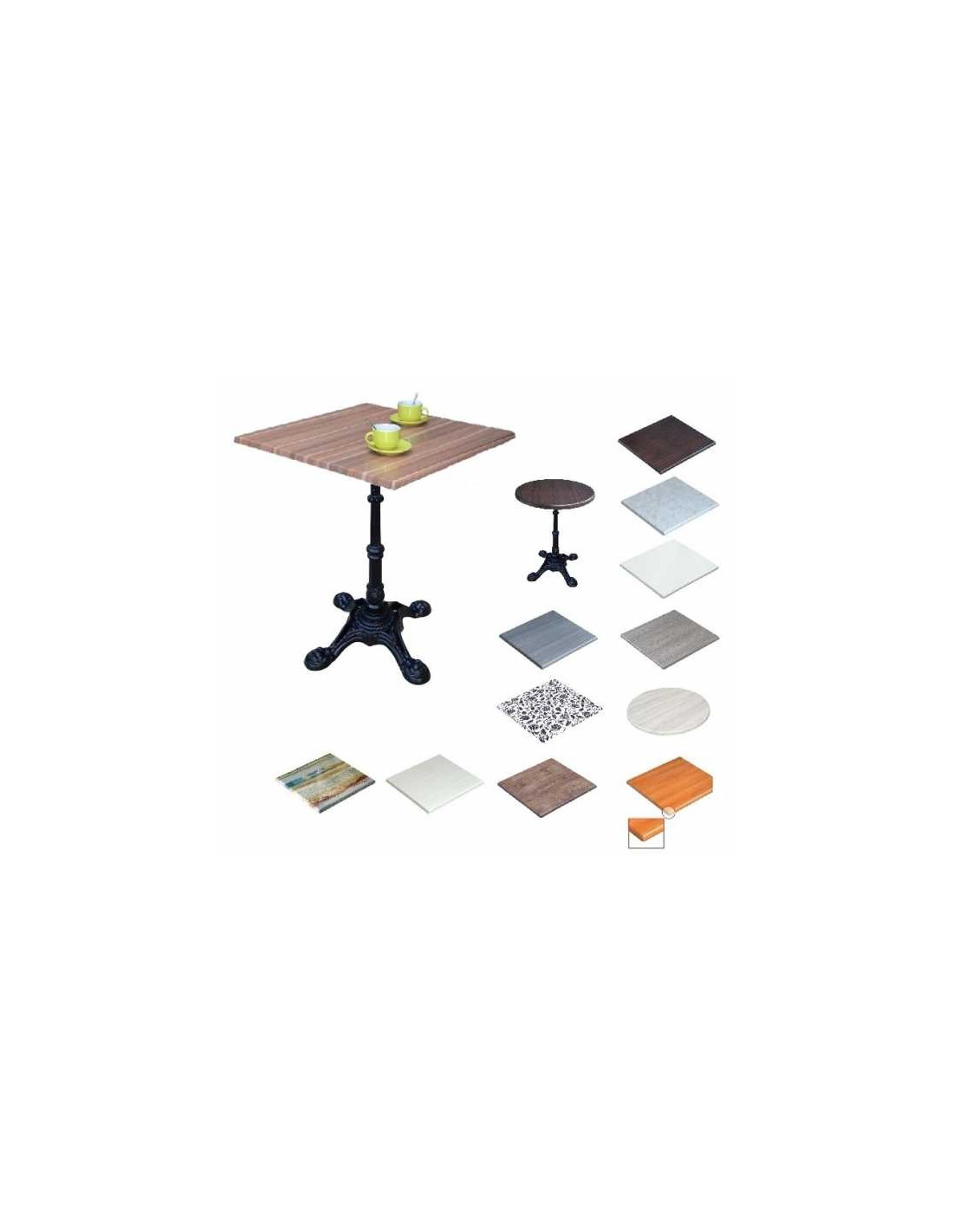 WERZALIT tables with central cast iron leg, for outdoor and indoor - terrace, garden, bar, restaurant, pub, pizzeria, fast food or club, canteen, dining room. They have a very high resistance to heavy traffic, impact, scratches, moisture, heat, frost, ultraviolet rays, cigarette ash. The werzalit table top is perfectly hygienic and very easy to maintain.